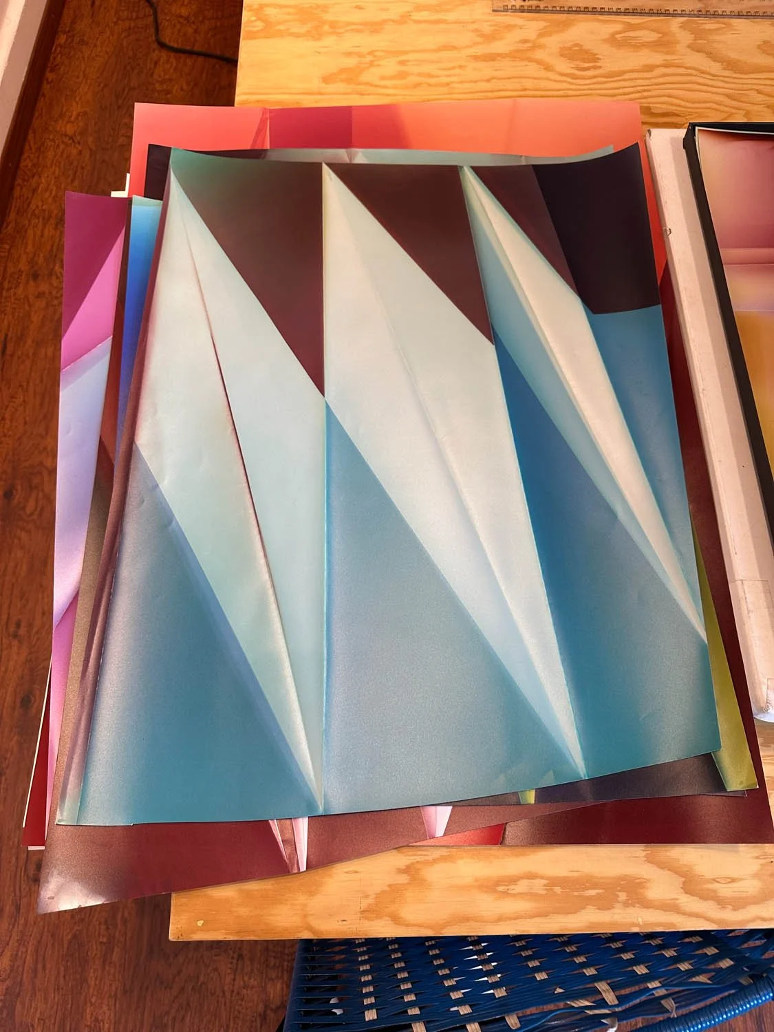 The resulting constructions are otherworldly, created in a manual process that takes out the machine, going beyond the analog and inviting the viewer to linger between the folds of another possible world, one with queer angles and horizons.