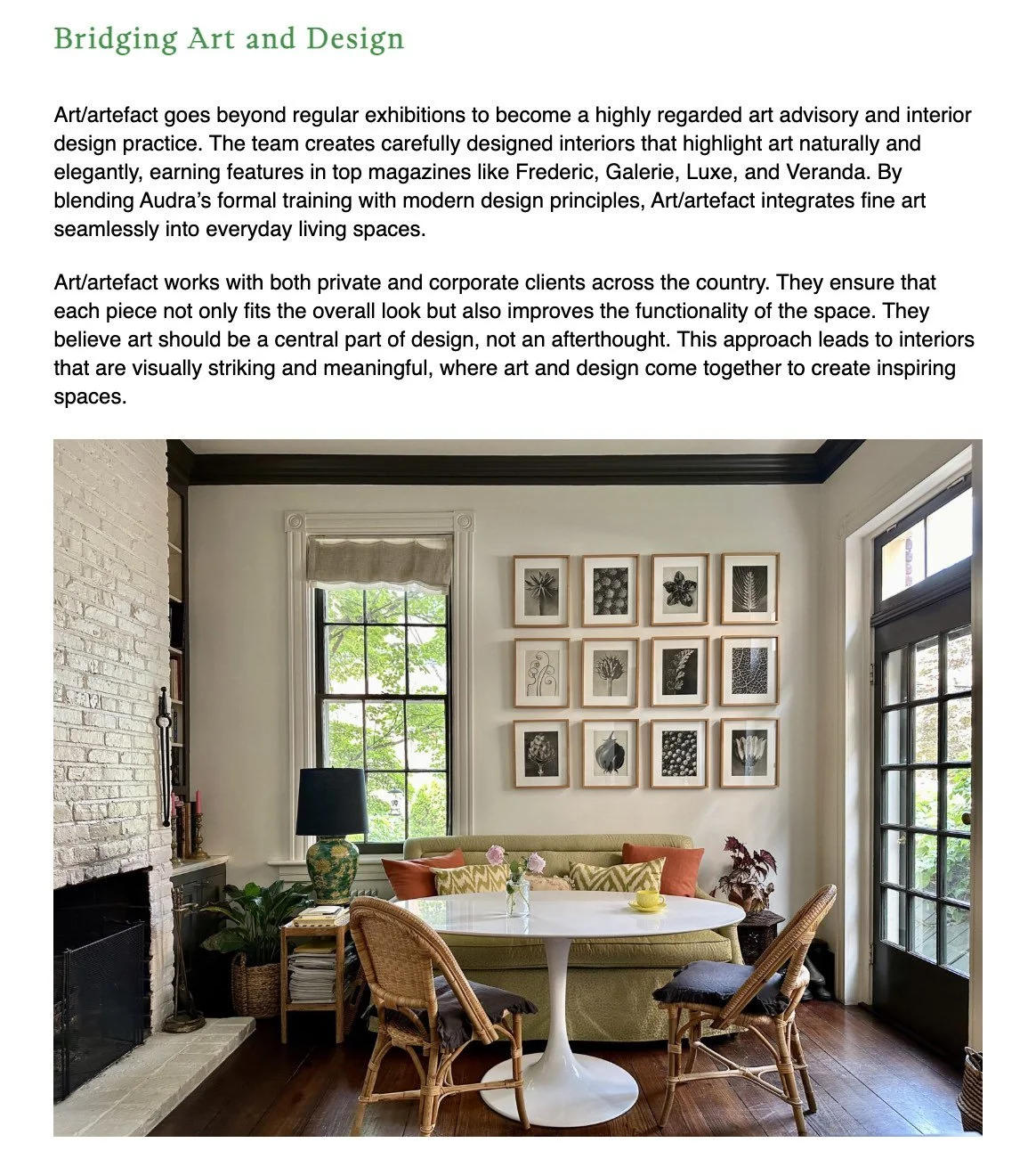 “Audra’s extensive background in art and design provides a strong foundation for her work. Her modern sensibility helps her create